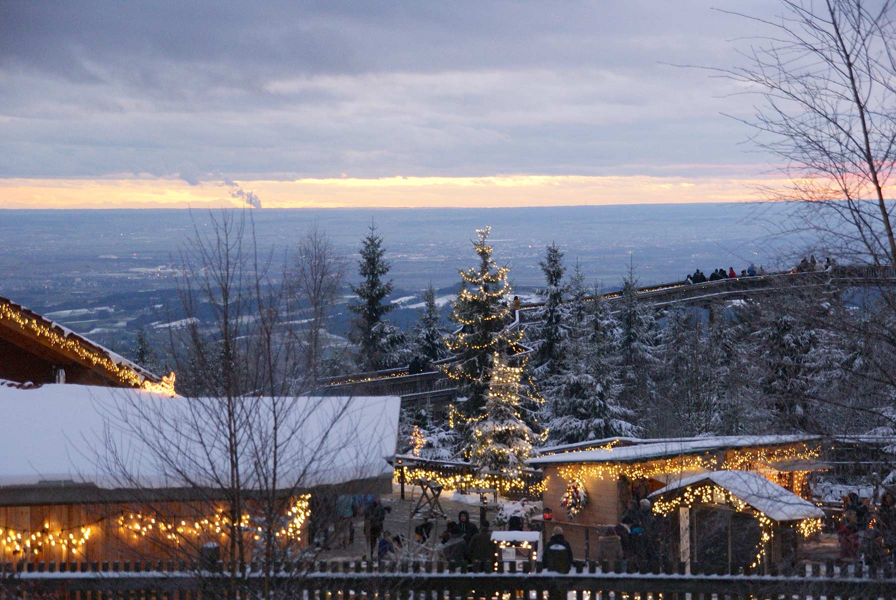 Mit dem Wintermarkt geht die Weihnachtsromantik am Waldwipfelweg in eine Verlängerung. Bei Lichterromantik erlebt man den Winterwald von oben. Auch das Haus am Kopf und der Bayerwald-Flieger laden zum Ferienvergnügen ein.