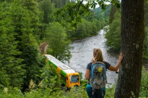Nicht nur am Muttertag ist eine Wanderung ab Waldbahn-Station (RB 38) Gumpenried-Asbach durch Bayerisch Kanada und zum Liebestal ein lohnendes Ausflugsziel. Auch für eine gemütliche Einkehr an den Waldbahn-Bahnhöfen in Viechtach, Schnitzmühle oder Teisnach ist gesorgt. Die leichte bis mittelschwere und etwa 9 Kilometer lange Wanderstrecke erschließt einen der schönsten Flussabschnitte des Schwarzen Regens. Los geht es ab dem Bahnhaltepunkt Gumpenried-Asbach. Die ersten 4 Kilometern auf der linken Seite regenabwärts bieten schöne Ausblicke auf den wildromantischen Fluss. Danach geht es über Wiesen und Felder ins Liebestal und entlang der Aitnach zur Bahnstation Schnitzmühle. Kartenmaterial und eine ausführliche Wegbeschreibung bietet der Naturpark Bayerischer Wald im Menüpunkt „Wandern“ zum Downloaden an.